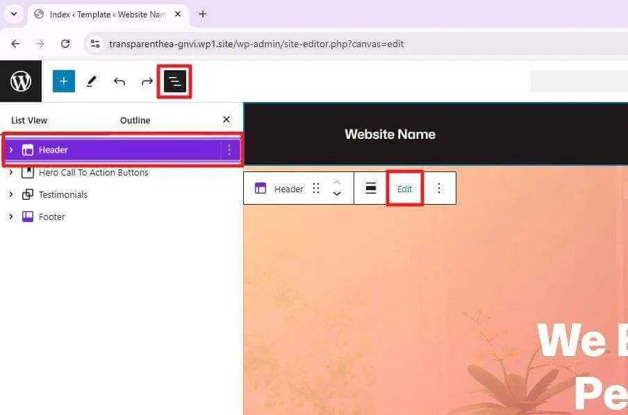 For, example I’m going to edit the header of this homepage.