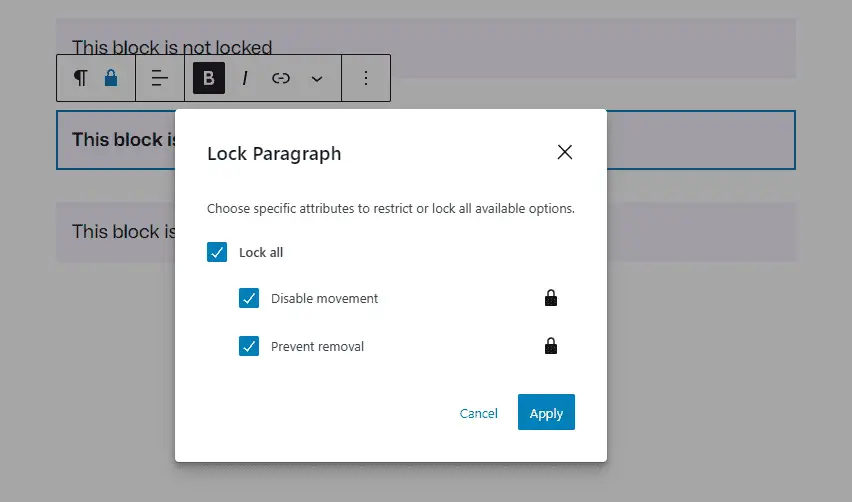 You can prevent blocks from being moved, removed, or even edited. This gives you more control over your layout and content structure.